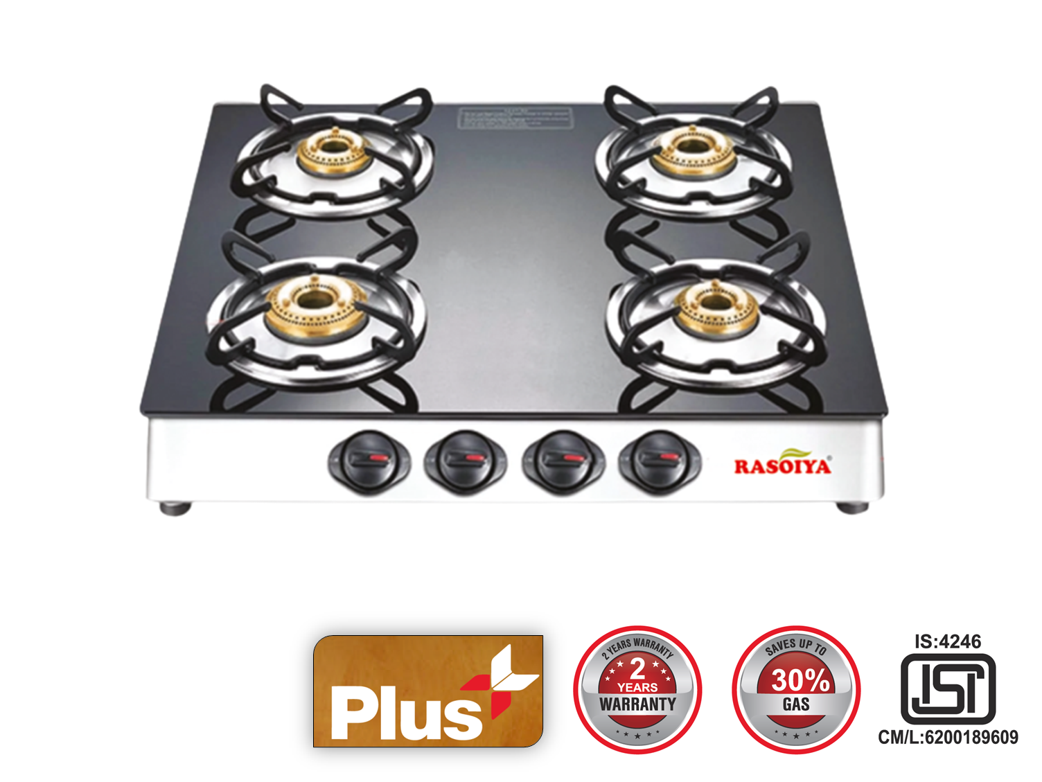 RASOIYA 4 BURNER GLASS TOP STOVE