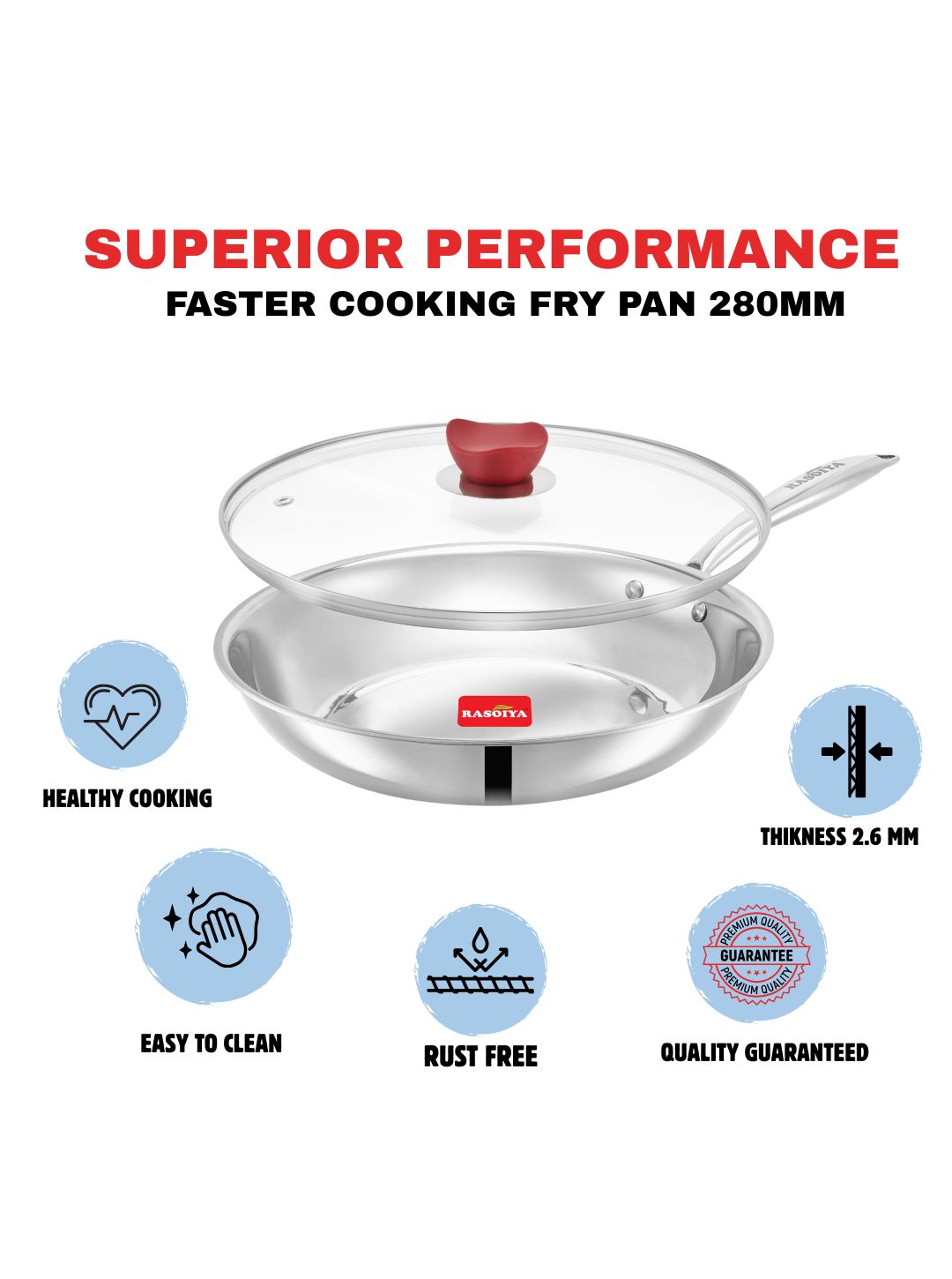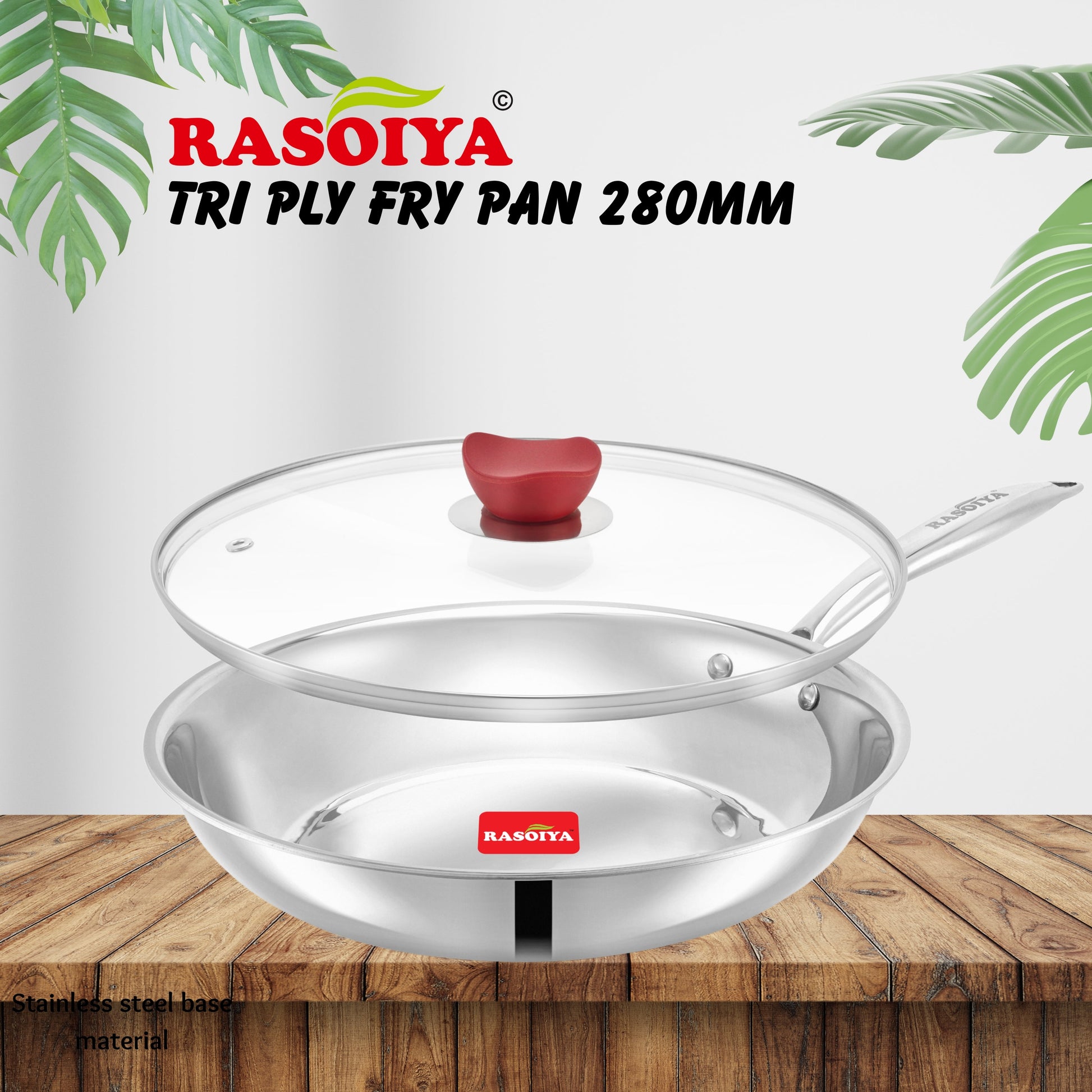 Rasoiya Tri-Ply Stainless Steel Fry Pan Premium 3-Layer Thick Body, Induction & gas Compatible